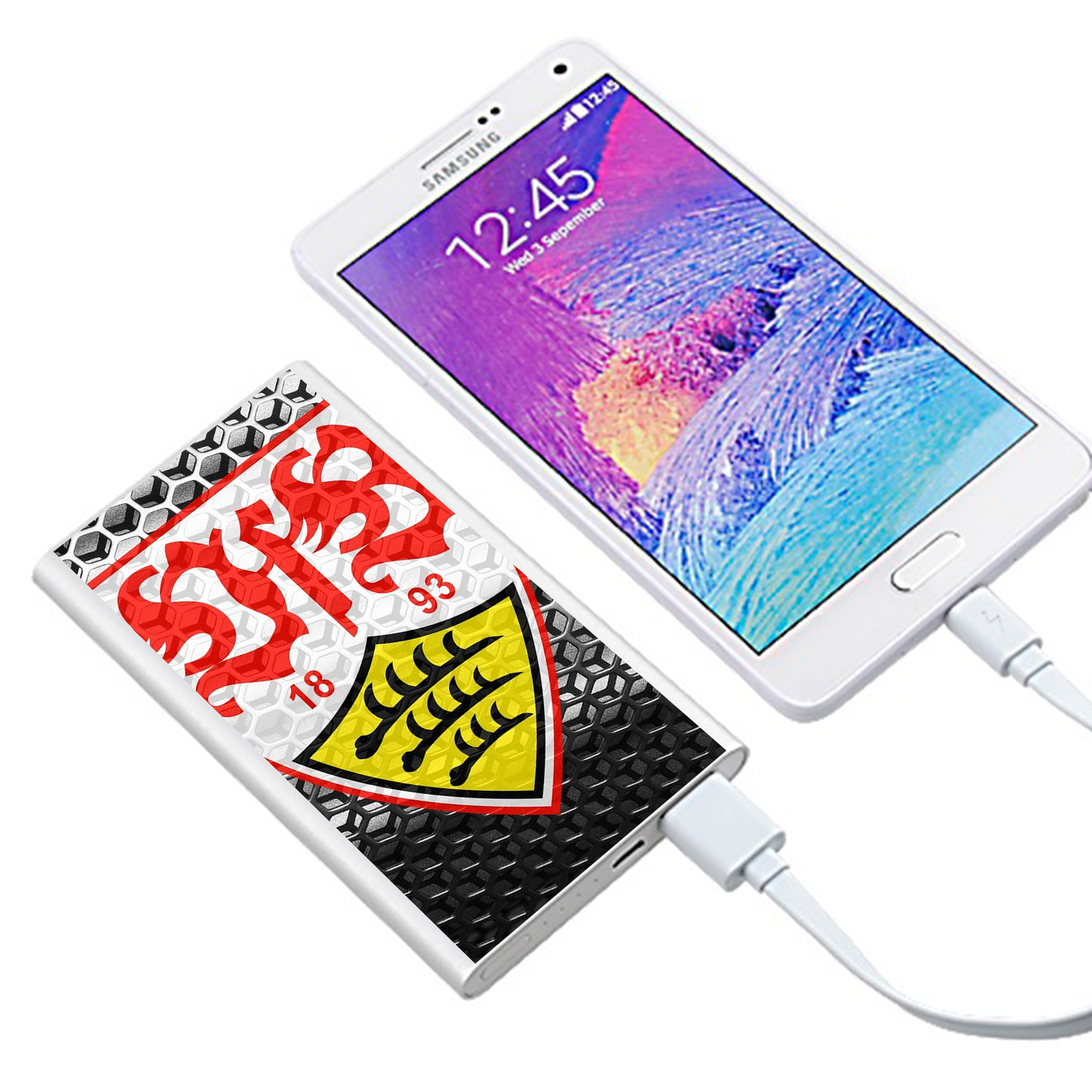 Husa se poate comanda si set cu baterie externa personalizata cu aceeasi grafica.