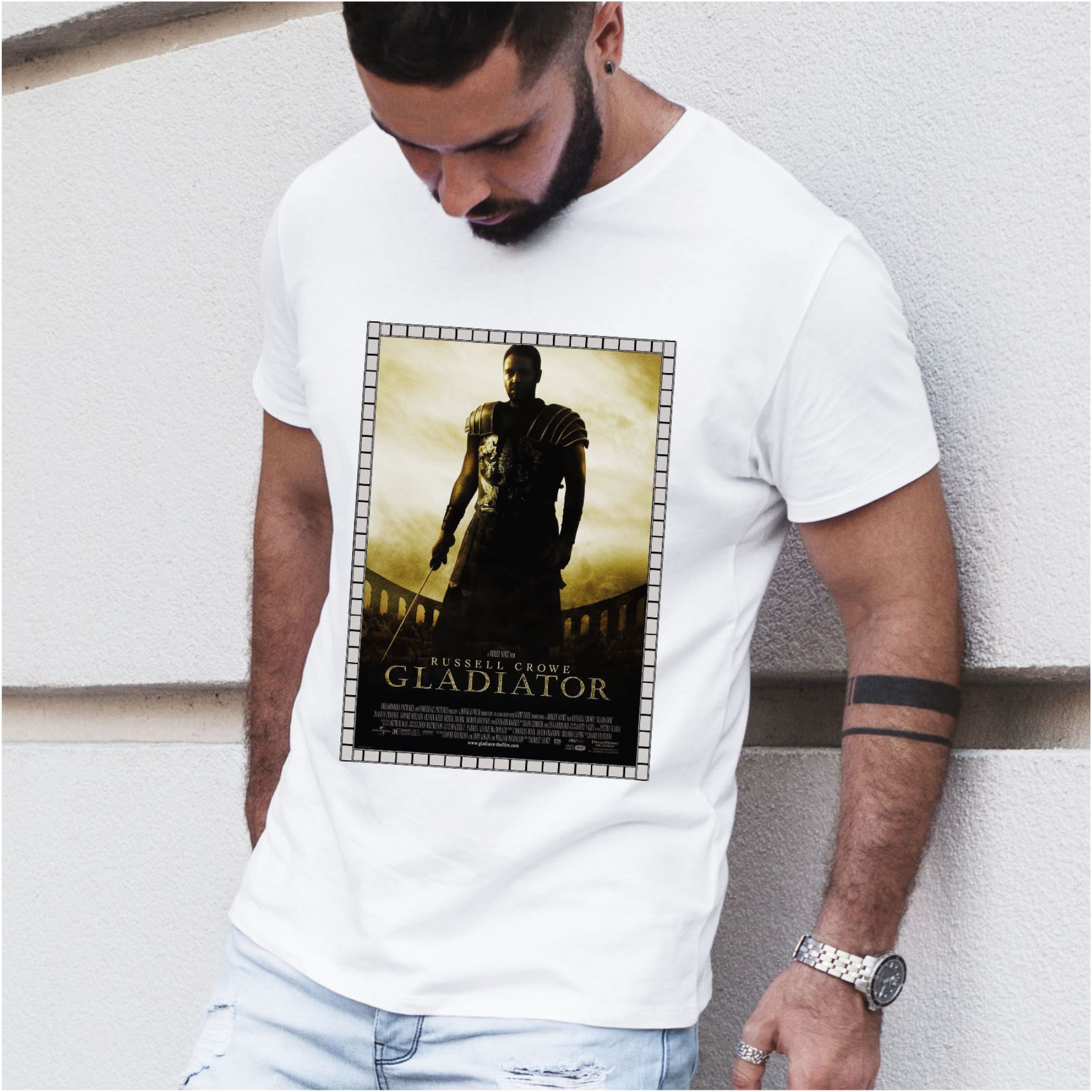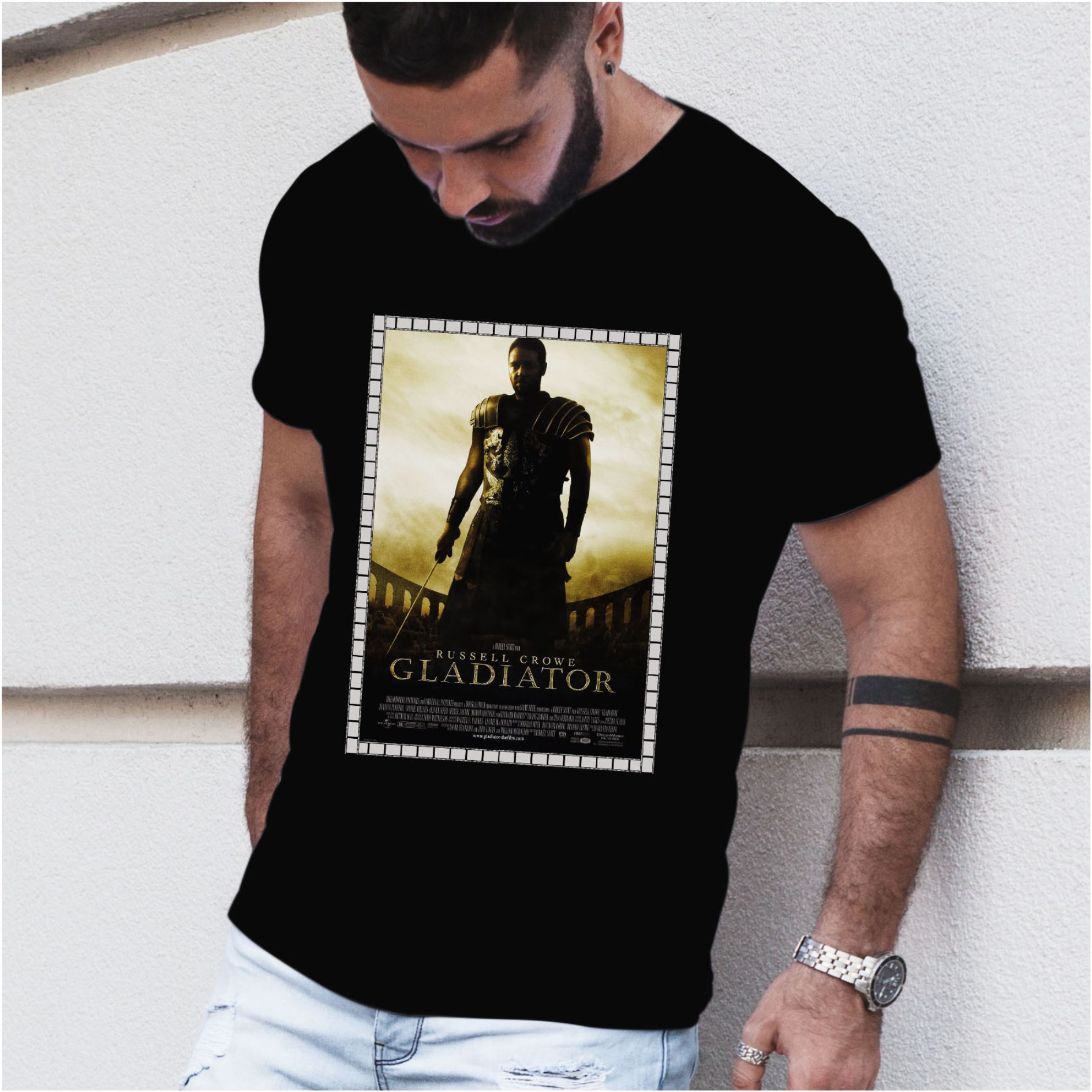 Tricou personalizat – cadoul perfect pentru fanii actorului Russell Crowe. Un om jefuit de numele și demnitatea sa se străduiește să le câștige înapoi și să obțină libertatea poporului său, în această drama istorică epică a regizorului Ridley Scott. În anul 180, moartea împăratului Marcus Aurelius aruncă Imperiul Roman în haos. Maximus este unul dintre generalii cei mai capabili și de încredere ai armatei romane și un consilier-cheie al împăratului. În timp ce fiul lui Commodus, al lui Marcus urcă la tron, Maximus va fi executat. El scapă, dar este capturat de comercianții de sclavi. Renumit spaniol și forțat să devină un gladiator, Maximus trebuie să se lupte cu ceilalți pentru a distra publicului. Abilitățile sale de luptă îl servesc bine și devine unul dintre cei mai cunoscuți și admirați bărbați care se luptă în Colosseum. Hotărât să se răzbune, Maximus crede că își poate folosi faima și priceperea în inel pentru a răzbuna pierderea familiei sale. Pe măsură ce gladiatorul începe să-i provoace dominația, Commodus decide să-și pună la încercare propria sa luptă, luptându-se cu Maximus într-o luptă pentru moarte.