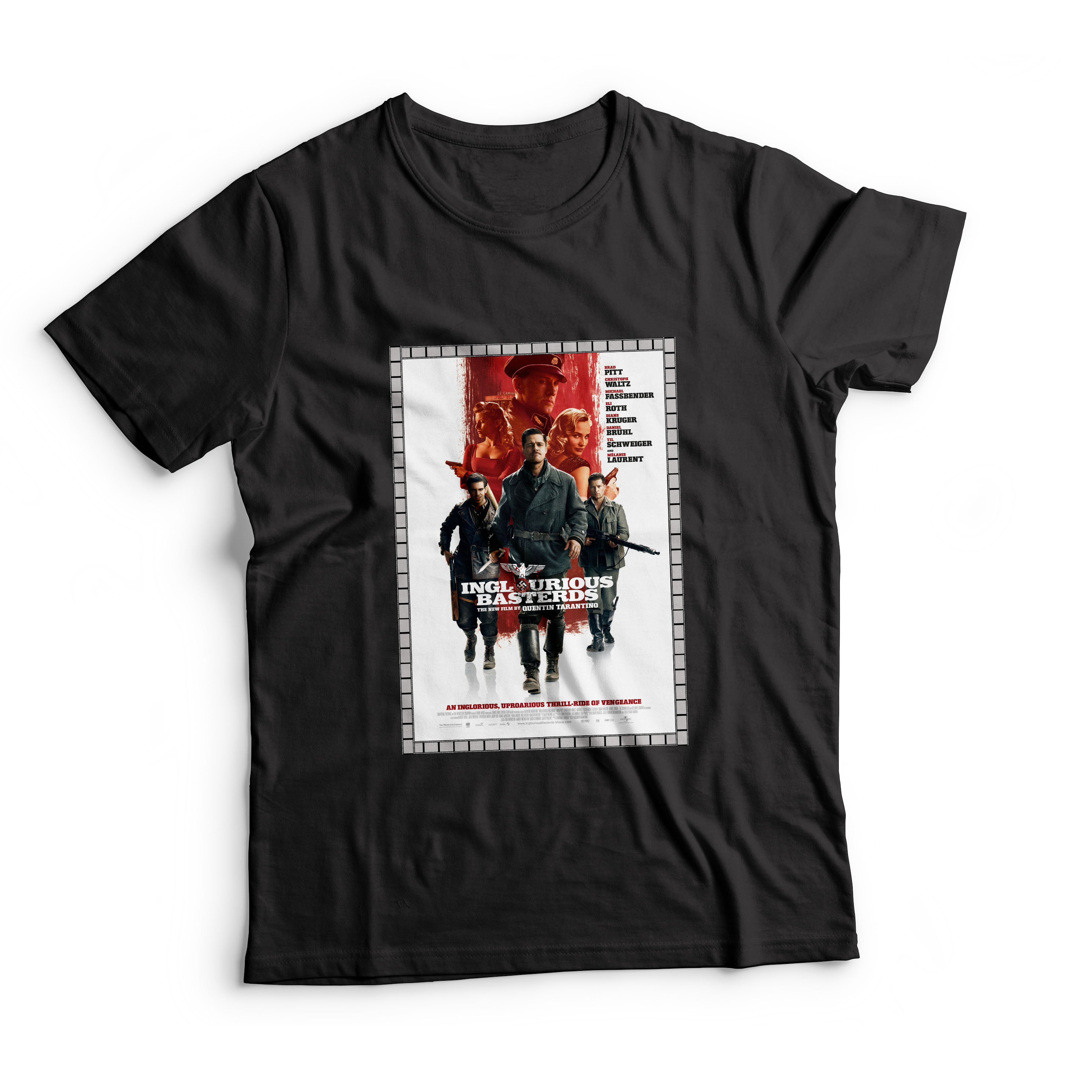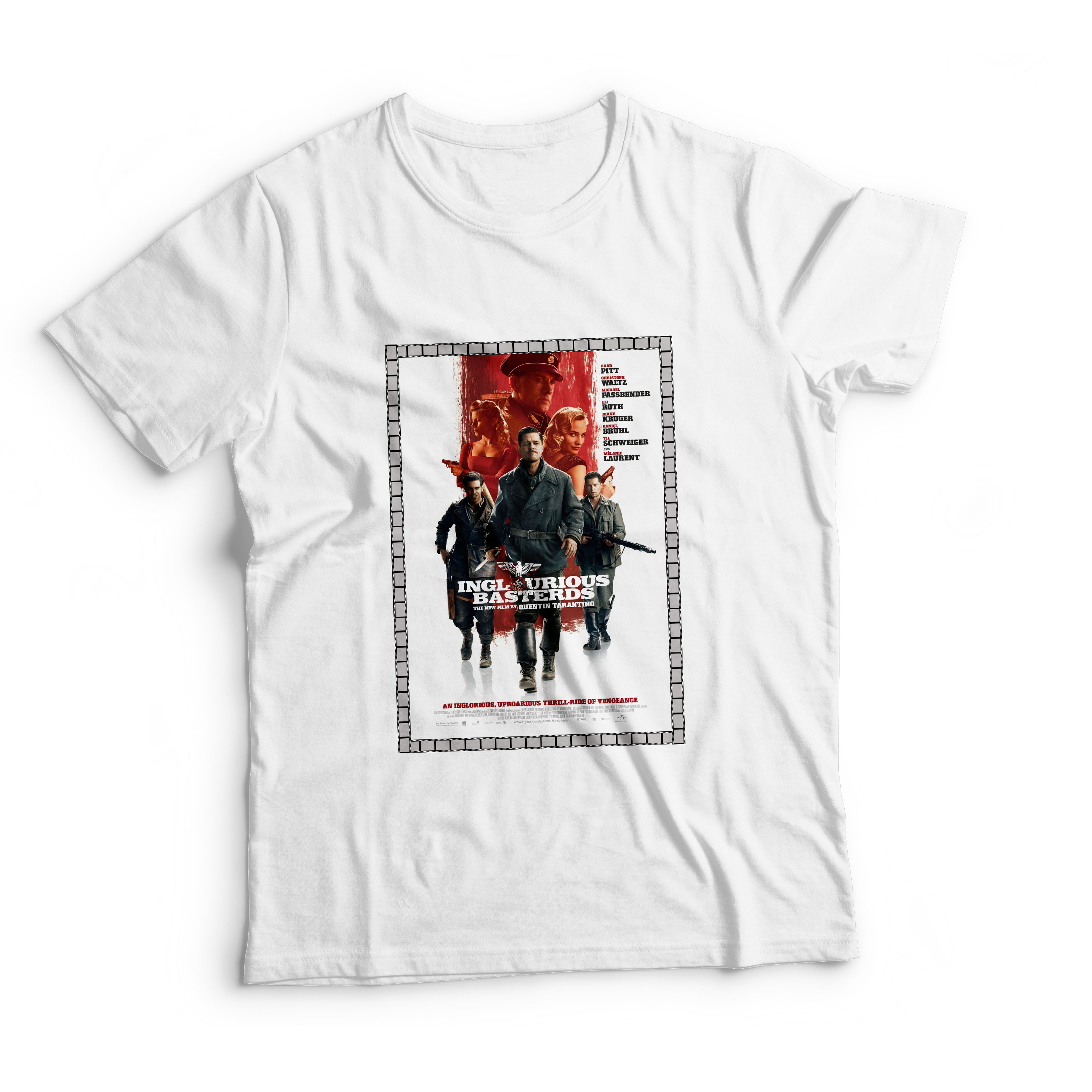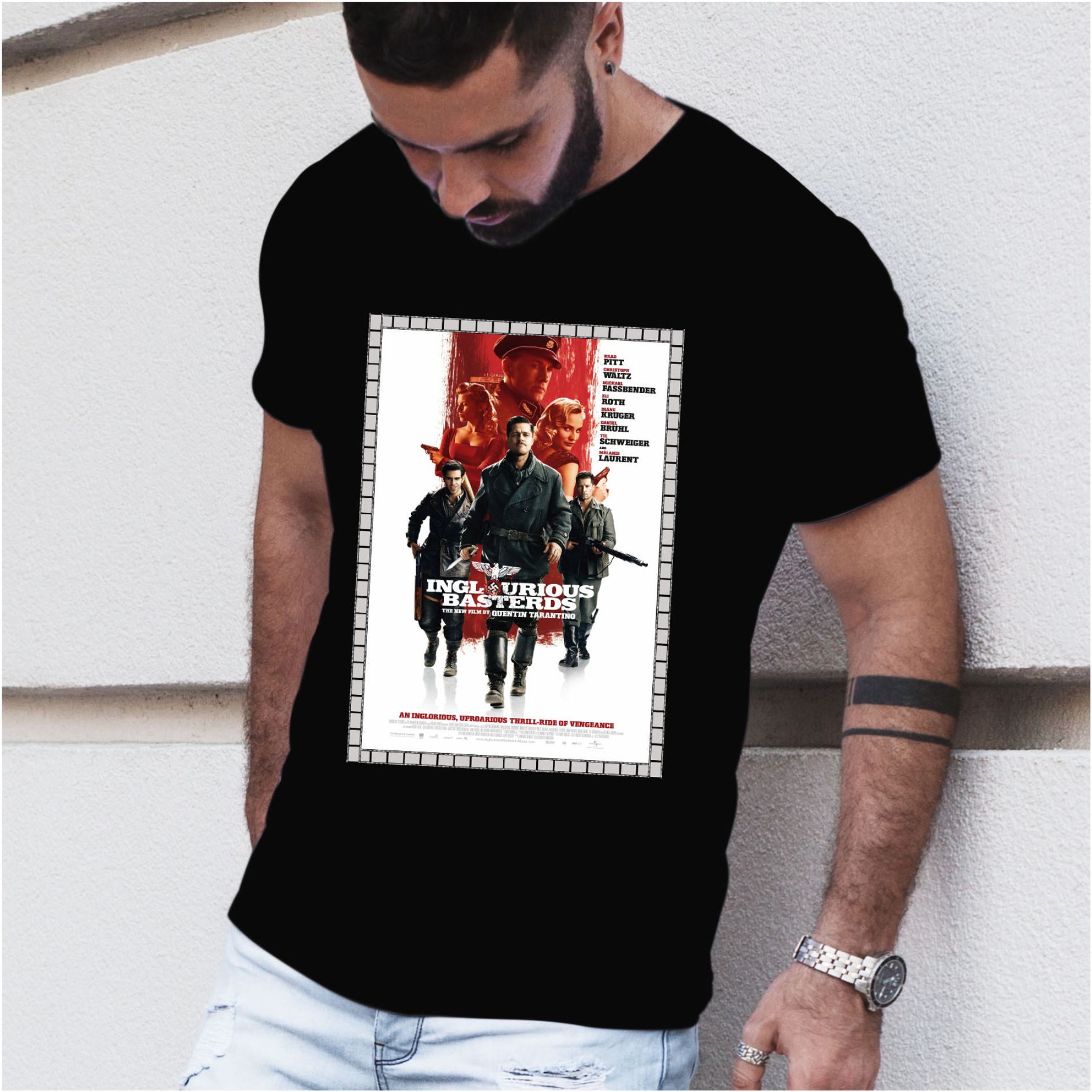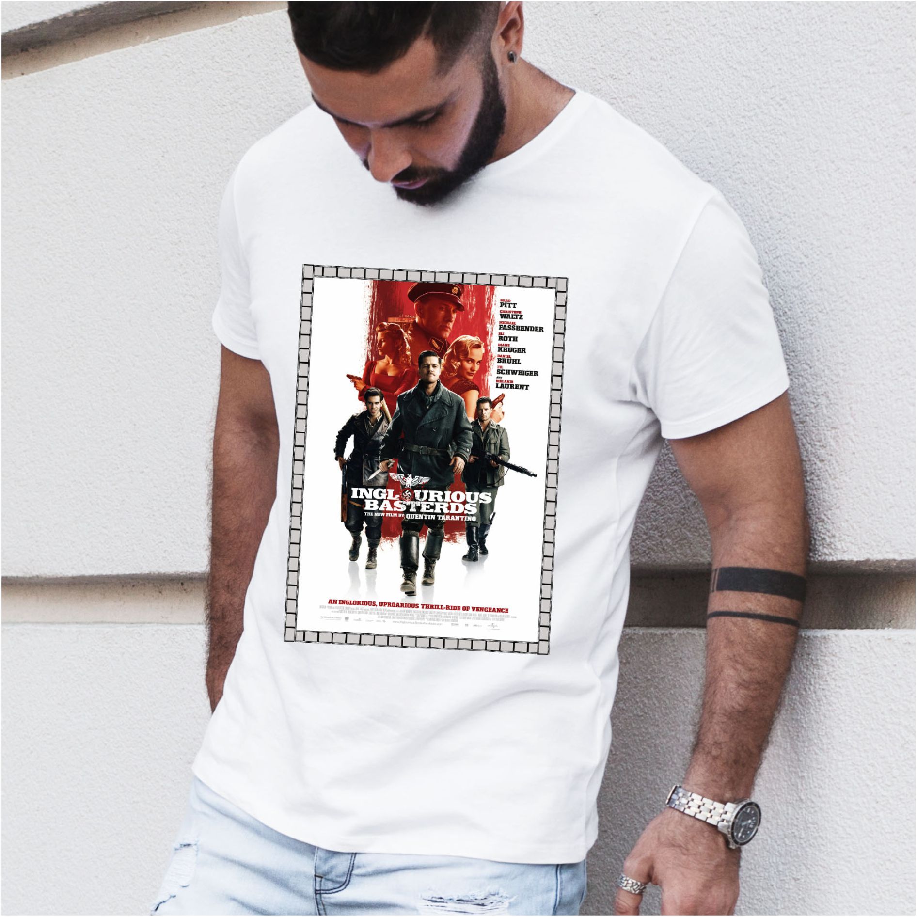 Tricou personalizat – cadoul perfect pentru fanii renumitului actor Brad Pitt si nu numai. În Franța ocupată de germani Shosanna Dreyfus (Melanie Laurent) privește neputincioasă cum familia ei este executată de colonelul nazist Hans Landa (Christoph Waltz). Shosanna scapă ca prin urechile acului și fuge la Paris, unde-și creează o nouă identitate ca proprietar și proiecționist de cinema. În altă parte a Europei, locotenentul Aldo Raine (Pitt) organizează un grup de soldați evrei pe care-i conduce într-o campanie de răzbunare împotriva naziștilor. Cunoscuți sub numele de “The Basterds” (adică “ticăloșii”), trupa lui Raine o adoptă pe actrița și agenta sub acoperire de origine germană Bridget von Hammersmark (Diane Kruger) într-o misiune al cărei scop este lichidarea liderilor celui de-al treilea Reich. Soarta unește drumurile personajelor in cadrul unei sali de cinema, unde Shosanna este hotărâtă să-și ducă la îndeplinire propriul ei plan de răzbunare.