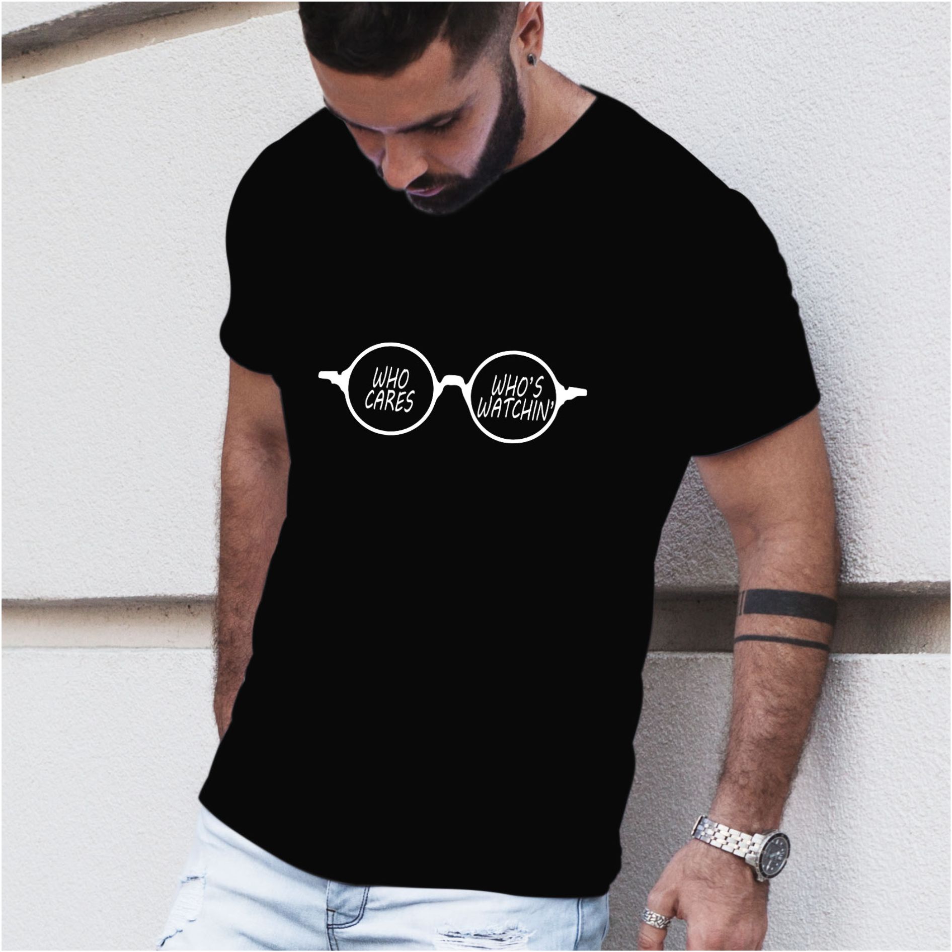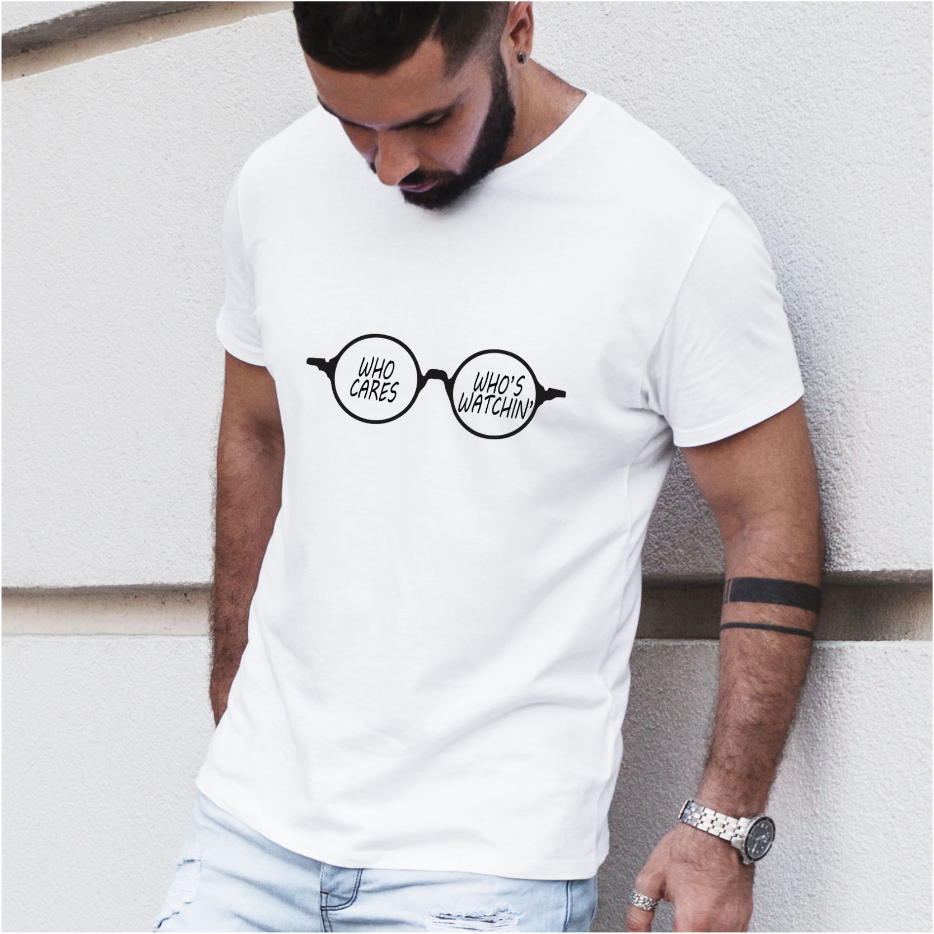 Tricoul personalizat pentru barbati “Who cares who’s watching” este cadoul perfect pentru toti cei care se regasesc in mesajul tricoului.