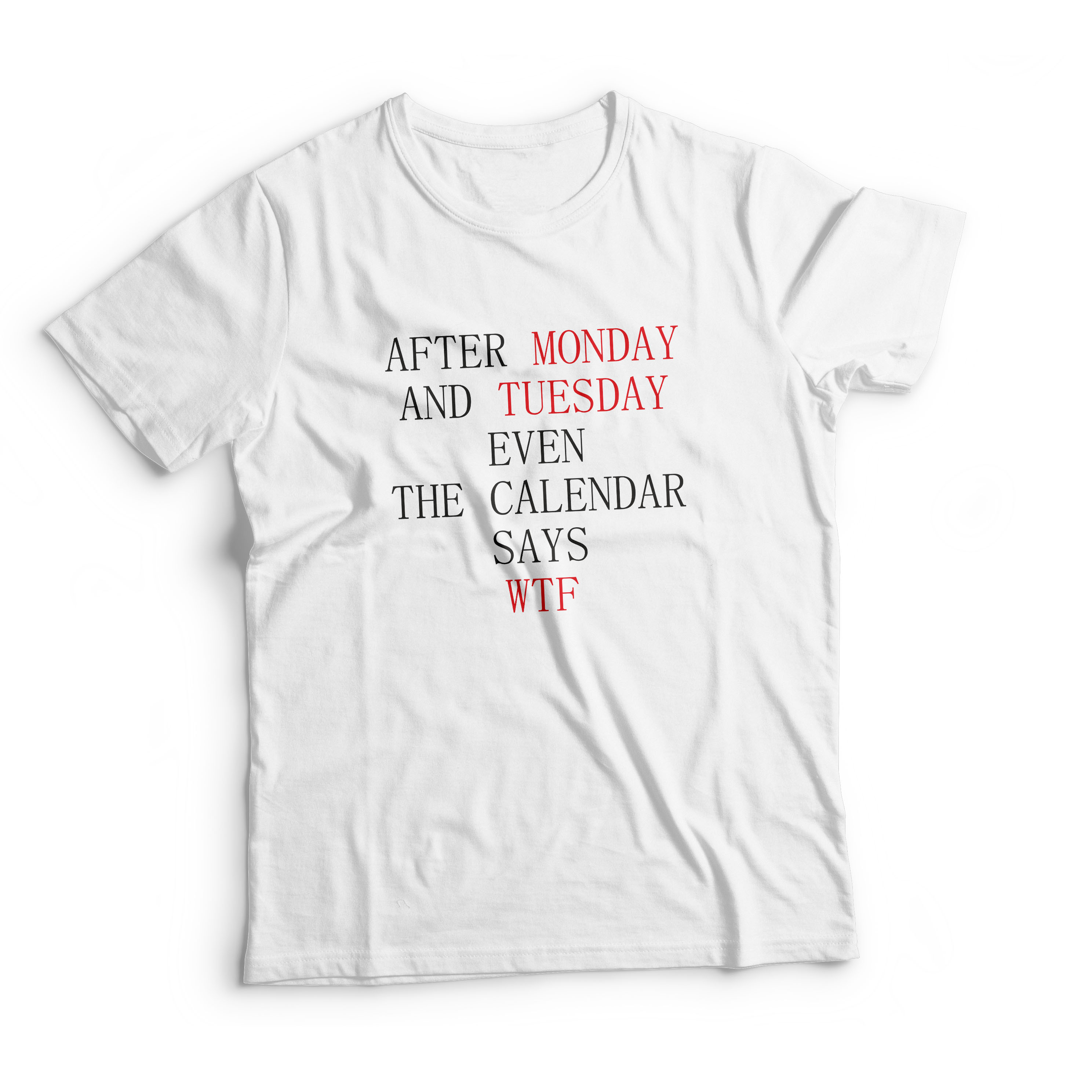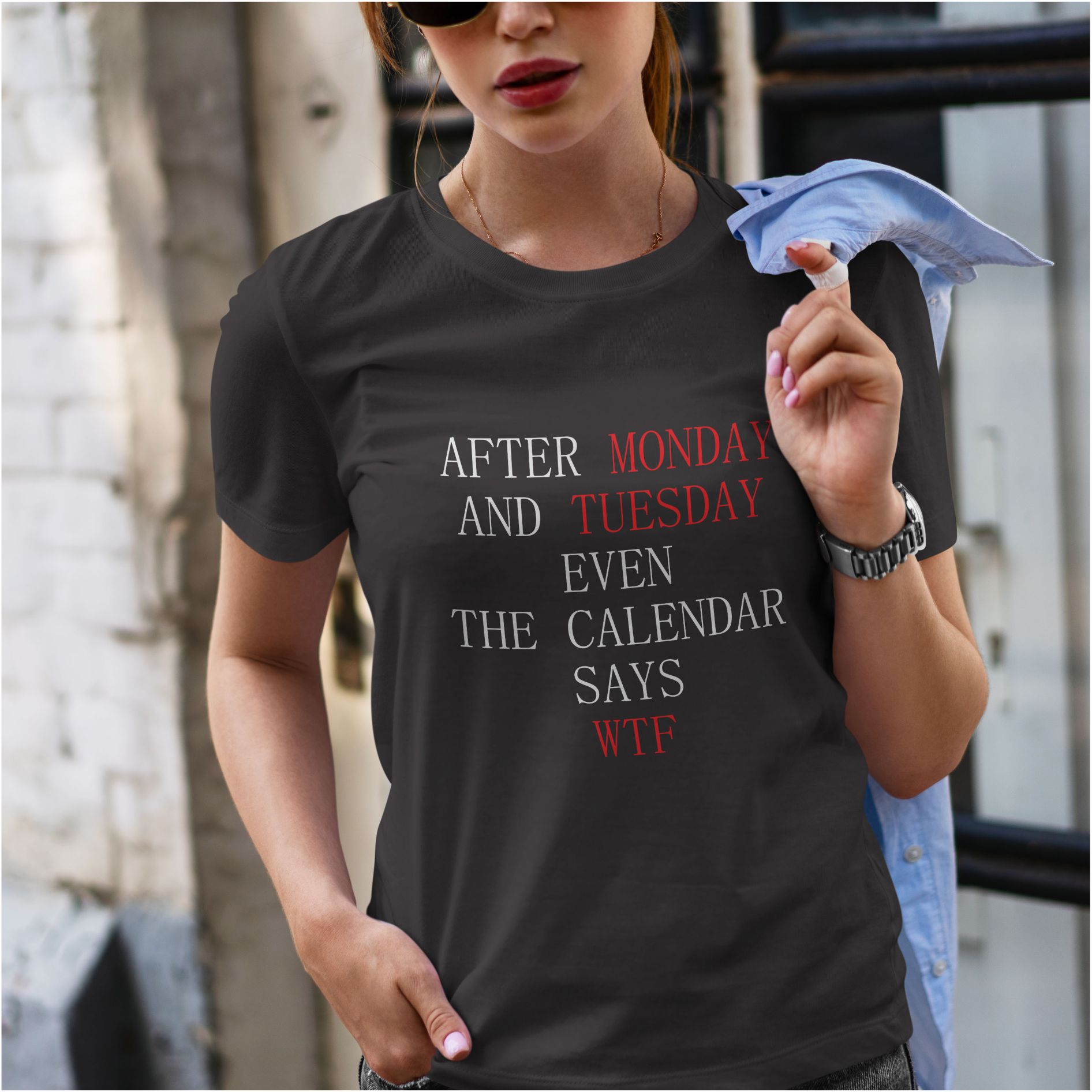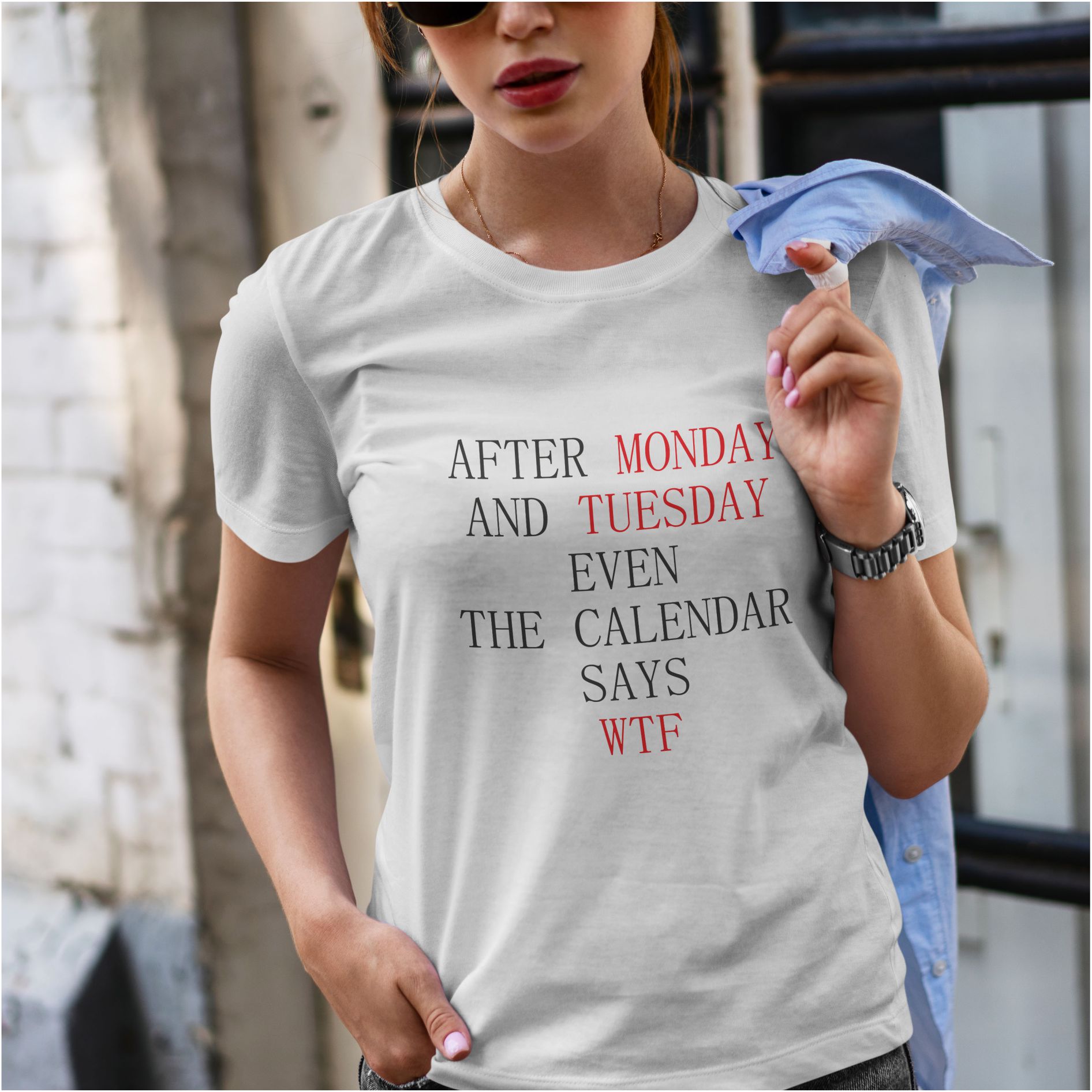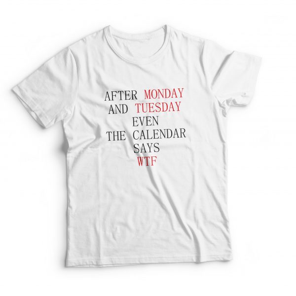 Tricoul personalizat pentru femei “After monday and tuesday even the calendar says WTF”. Un cadou amuzant pentru ca si noi zicem la fel. WTFFFF !!!???